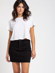 OUR BEST SELLING CLASSIC DENIM SKIRT, THE CUTIE HUGS YOUR CURVES AND FLATTENS YOUR STOMACH AREA WITH A NO GAP WAISTBAND AND CLASSIC 5 POCKET STYLING DETAIL. HUGS YOUR CURVES AND FLATTENS YOUR STOMACH AREA.